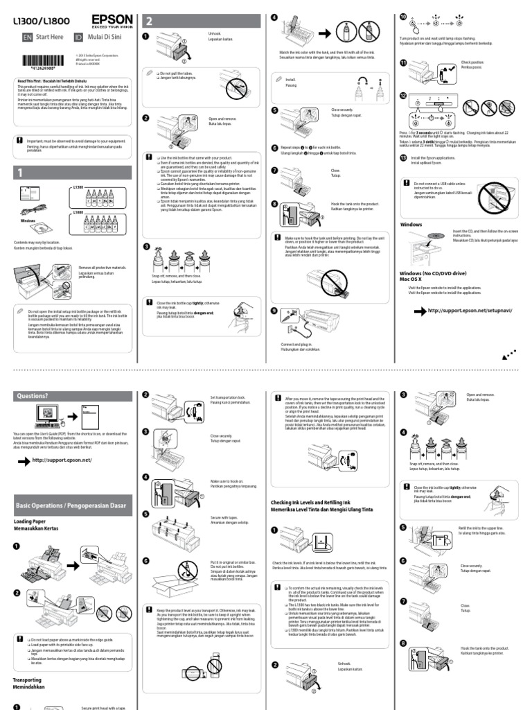 Printer Epson L 1300 Lampu Tinta Dan Kertas Berkedip Bersamaan. Pola lampu indikator printer Epson seperti ini juga mengindikasikan terjadinya internal error. Biasanya disebabkan oleh paper jam atau ada kertas atau robekan kertas Colokkan kembali kabel power dan hidupkan kembali printer Anda.